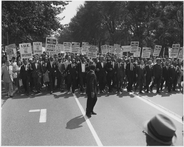 Keywords: Civil Rights March on Washington, D.C. (Leaders marching.) - NARA - 542001.tif Scope and content General notes 542001 Local identifier 306-SSM-4C 35 5 U S Information Agency Press and Publications Service ca 1953 - ca 1978 Still Picture Records Section Special Media Archives Services Division NWCS-S National Archives at College Park 8601 Adelphi Road College Park MD 20740-6001 1963-08-28 Record group Record Group 306 Records of the U S Information Agency 1900 - 2003 Record group ARC 622 Miscellaneous Subjects Staff and Stringer Photographs compiled 1961 - 1974 Series ARC 541992 File unit File unit ARC Variant control numbers NAIL Control Number NWDNS-306-SSM-4C 35 5 yes Other versions NARA-cooperation PD-USGov March on Washington for Jobs and Freedom Civil rights activists from the United States |