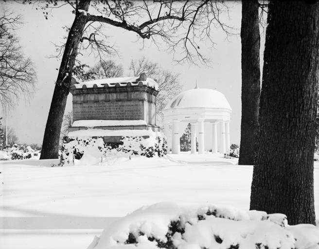 | Keywords: Civil War Unknowns Memorial and Temple of Fame - Arlington National Cemetery - Arlington County VA USA - 1936-02-08.jpg en The Civil War Unknowns Memorial left and the Temple of Fame right in the snow at Arlington National Cemetery in Arlington County Virginia in the United States Image was taken on February 8 1931 http //www loc gov/pictures/item/hec2013010073/ Harris Ewing Civil War Unknowns Monument Former memorials at Arlington National Cemetery PD-USGov | ||||