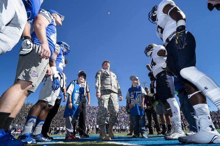 Keywords: CJCS and VCJCS attend Warrior Games Tailgate and AF vs. Navy football 141004-D-HU462-304.jpg en Chairman of the Joint Chiefs of Staff U S Army Gen Martin E Dempsey flips the game coin at the start of the Air Force versus Navy football game at the U S Air Force Academy's Falcon Stadium in Colorado Springs Colo Oct 4 2014 DOD photo by Staff Sgt Sean K Harp U S Army/Released 2014-10-04 Staff Sgt Sean Harp https //www dvidshub net/image/1603311 141004-D-HU462-304 2014-10-07 16 01 UNITED STATES AIR FORCE ACADEMY CO US PD-USGov Martin E Dempsey Falcon Stadium Images from DoD uploaded by Fæ |