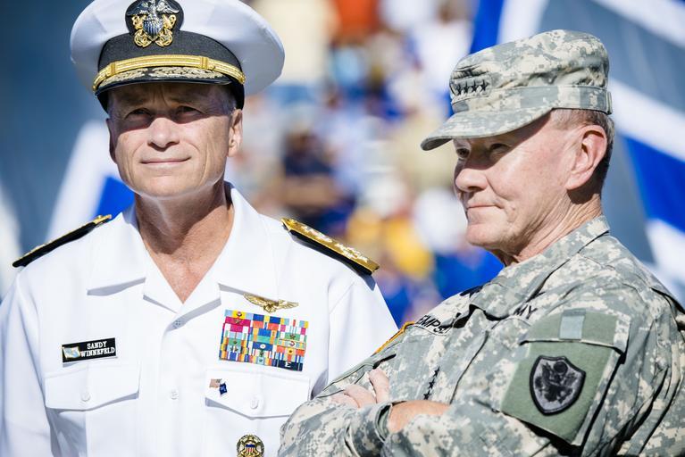 Keywords: CJCS and VCJCS attend Warrior Games Tailgate and AF v Navy football 141004-D-HU462-489.jpg en 18th Chairman of the Joint Chiefs of Staff Gen Martin E Dempsey and Vice Chairman of the Joint Chiefs of Staff Adm James A Winnefeld Jr attend the Warrior Games tailgate celebration that was co-held at the Air Force versus Navy football game at the U S Air Force Academy's Falcon Stadium in Colorado Springs Colorado Oct 4 2014 DoD photo by Army Staff Sgt Sean K Harp/Released 2014-10-04 Staff Sgt Sean Harp https //www dvidshub net/image/1604899 141004-D-HU462-489 2014-10-08 00 01 UNITED STATES AIR FORCE ACADEMY CO US PD-USGov James A Winnefeld Jr Martin E Dempsey Falcon Stadium Images from DoD uploaded by Fæ |