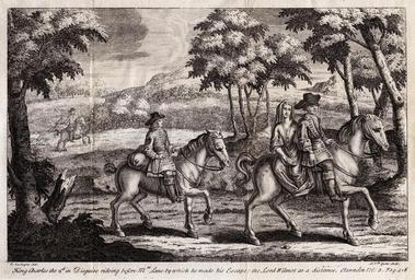 Keywords: Clarendon's History of the Rebellion - P. La Vergne - Michael van der Gucht - Flight of Charles II.jpg King Charles the 2<sup>d</sup> in Disguise rideing before M<sup>rs</sup> Lane by which he made his Escape; the Lord Wilmor at a distance Clarendon Vol 3 Pag 418 - P La Vergne inv M V<sup>dr</sup> Gucht Sculp <center>THE <big>HISTORY</big><br /> OF THE<br /> <big><i>REBELLION</i></big><br /> AND<br /> <big>C</big>IVIL <big>W</big>ARS<br /> IN <br /> <big>ENGLAND</big><br /> Begun in the Yeaar 1641 <br /> With the precedent Paſſages and Actions that contributed thereunto and the happy End and Concluſion thereof by the K<small>ING</small>'<small>S</small> bleſſed R<small>ESTORATION</small> and R<small>ETURN</small> upon the 29<sup>th</sup> of <i>May</i> in the Year 1660 <hr> <small>Written by the Right Honourable</small><br /> E<small>DWARD</small> E<small>ARL</small> of C<small>LARENDON</small> <br /> Late Lord High Chancellor of <i>England</i> Privy Counſellor in the Reigns of King C<small>HARLES</small> the Firſt and the Second <hr> κτῆμα ἐς εί <i>Thucyd </i><br /> <i>Ne quid Falſi dicere audeat ne quid Veri non audeat </i> Cicero <hr> V<small>OLUME</small> III P<small>ART</small> 2 <hr> <i>OXFORD </i><br /> Printed at the T<small>HEATER</small> <i>An Dom </i> MDCCXXXI 1731 Michael van der Gucht after P La Vergne PD-Old-100 File Clarendon's History of the Rebellion - P La Vergne - Michael van der Gucht - Flight_of_Charles_II - original scan png - Original Scan - Archival PNG File Clarendon's History of the Rebellion - P La Vergne - Michael van der Gucht - Flight_of_Charles_II - original scan jpg - Original Scan - JPG for easy viewing File Clarendon's History of the Rebellion - P La Vergne - Michael van der Gucht - Flight_of_Charles_II png - Restoration - Archival PNG File Clarendon's History of the Rebellion - P La Vergne - Michael van der Gucht - Flight_of_Charles_II jpg - Restoration - JPEG Edward Hyde 1st Earl of Clarendon Michael Vandergucht 17th-century engravings English Civil War Charles II of England in engravings |