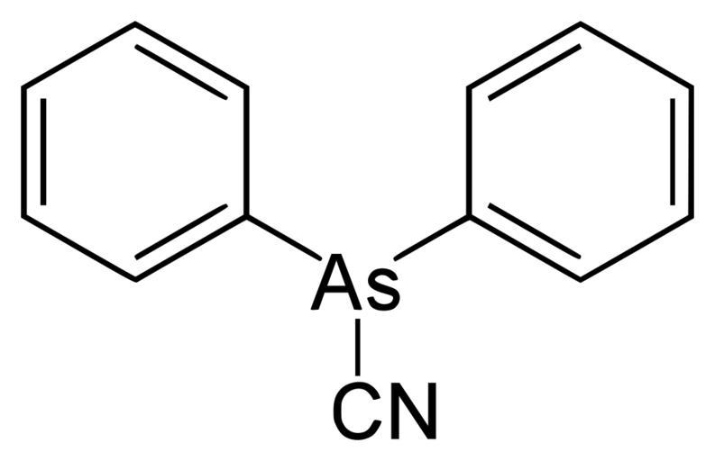 Keywords: Clark 2.svg Clark 2; Diphenylcyanoarsine; Diphenylarsine cyanide en Clark 2; Diphenylarsincyanid de Own 2008-04-20 Yikrazuul Cyanodiphenylarsine
