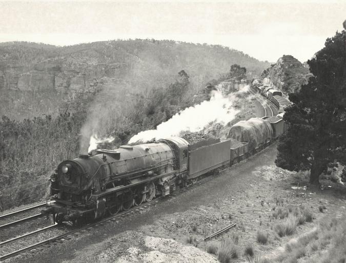 | Keywords: archives state records nsw staterecordsnsw newsouthwales blackandwhite class5712 locomotive train mount victoria mountvictoria blue mountains bluemountains steam railway goods d57 blue mountains line bluemountainsline outdoor monochrome black and white Class 5712 locomotive at 'Soldiers Bank' near Mount Victoria Dated: 7/10/1954 Digital ID: 17420 a014-a014000918 Rights: www.records.nsw.gov.au/about-us/rights-and-permissions We'd love to hear from you if you use our photos/documents. Many other photos in our collection are available to view and browse on our website using Photo Investigator. Class 5712 locomotive at 'Soldiers Bank' near Mount Victoria Dated: 7/10/1954 Digital ID: 17420 a014-a014000918 Rights: www.records.nsw.gov.au/about-us/rights-and-permissions We'd love to hear from you if you use our photos/documents. Many other photos in our collection are available to view and browse on our website using Photo Investigator. |