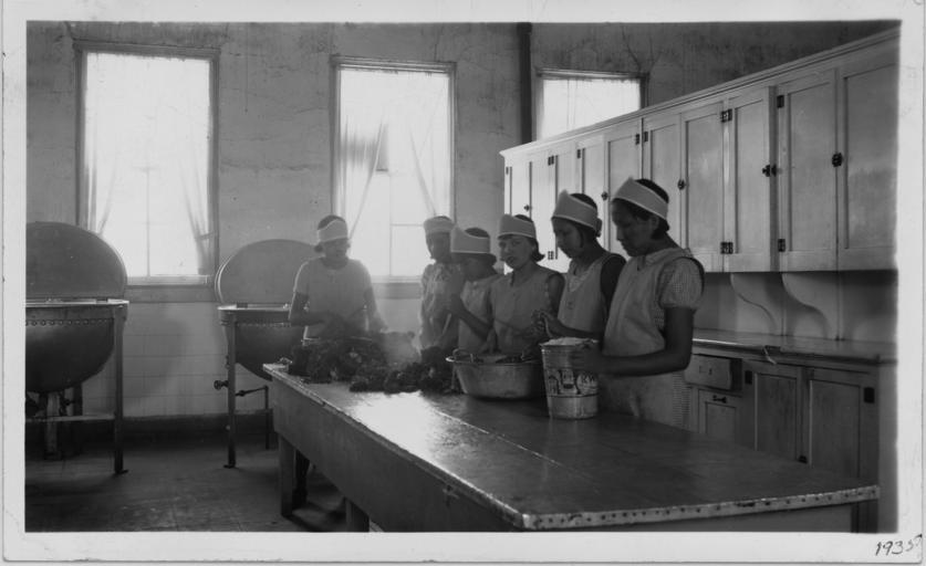 Keywords: Classes - NARA - 285423.jpg Scope and content Home economics; girls cooking class; farm and blacksmith unit; engineering; institutional laundering; drawing; beadwork; Hopi basketry; woodworking; speech; agriculture; native Indian foods; food preparation General notes 285423 Local identifier Department of the Interior Bureau of Indian Affairs Pierre Agency 1954 - 1972 NARA's Central Plains Region Kansas City NREA 400 West Pershing Road Kansas City MO 64108 1934 - 1936 Record group Record Group 75 Records of the Bureau of Indian Affairs 1793 - 1999 Record group ARC 404 Pierre School Agency Photographs compiled 1911 - 1971 Series ARC 285400 File unit File unit ARC Variant control numbers NAIL Control Number NRE-75-PI PHO -110 Other versions <gallery> File Classes_-_NARA_-_285423 tif tif File Classes_-_NARA_-_285423 jpg jpg </gallery> NARA-cooperation PD-USGov Classrooms in the United States Cookery classes |