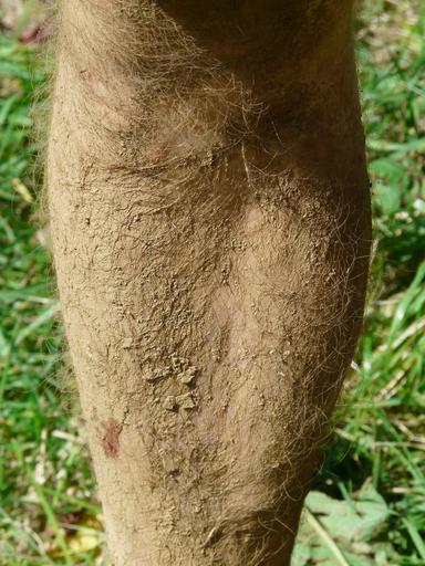 Keywords: clay bread crumbs lump of dirt legs loamy dirty dried on wade shin