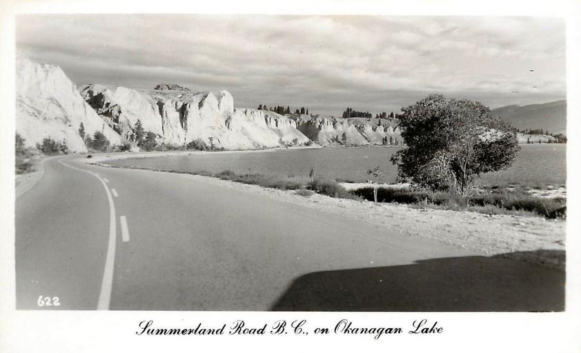 Keywords: photo border text outdoor "Summerland Road B. C., on Okanagan Lake" Post Card. Made in Canada. View looking north along the Okanagan Highway (then Hwy. 5; Hwy. 97 from 1953) along Lake Okanagan approximately 8.5 km north of Penticton, BC. "Summerland Road B. C., on Okanagan Lake" Post Card. Made in Canada. View looking north along the Okanagan Highway (then Hwy. 5; Hwy. 97 from 1953) along Lake Okanagan approximately 8.5 km north of Penticton, BC. |