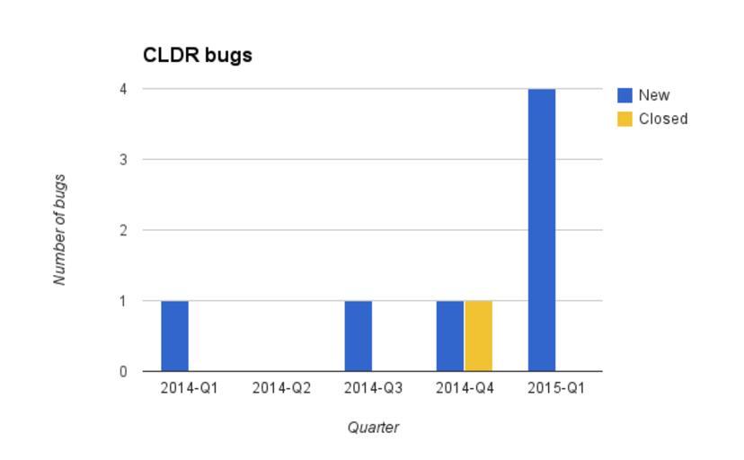 Keywords: CLDR-bugs-2014-15.png en Number of new and closed bugs for CLDR extension from 1 January 2014 to 31 March 2015 2015-04-13 own Runa Bhattacharjee WMF other versions cc-zero Uploaded with UploadWizard Uncategorized 2015 April 13