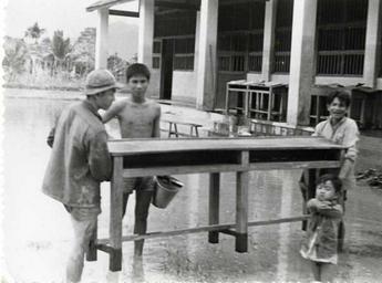 | Keywords: gene stoltzfus genestoltzfus international voluntary service internationalvoluntaryservice vietnam school flood blackandwhite monochrome black and white Caption: This school is being cleaned and readied again for students after the flood. Citation: Gene Stoltzfus Papers, 1940-2012. HM1-101. Photographs: Vietnam, International Voluntary Service, 1963-1967. Box 4 Folder 2. Mennonite Church USA Archives - Goshen. Goshen, Indiana. Caption: This school is being cleaned and readied again for students after the flood. Citation: Gene Stoltzfus Papers, 1940-2012. HM1-101. Photographs: Vietnam, International Voluntary Service, 1963-1967. Box 4 Folder 2. Mennonite Church USA Archives - Goshen. Goshen, Indiana. |