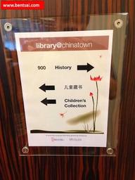 Answer: By having clear arrow indicators on the sign for each book category.