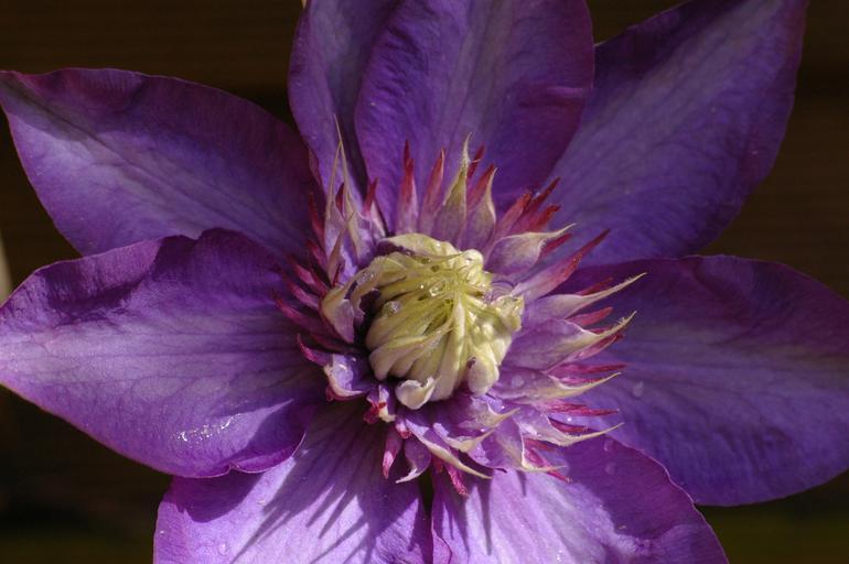 Keywords: clematis climber purple flower nature plant petals blossom bloom close bloom violet purple flower garden filigree