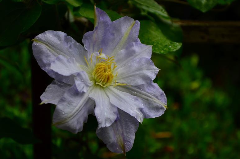 Keywords: clematis flower bloom purple spring green climber climbing petal blossoming botanical nature floral blooming