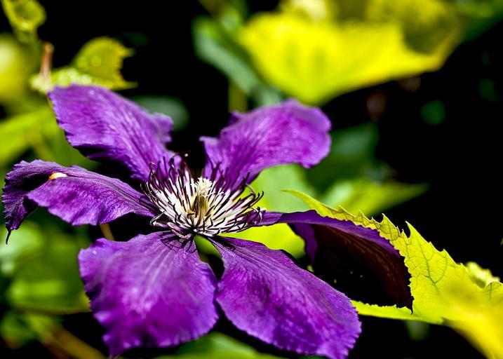 Keywords: clematis flower plant plant a garden nature garden purple flower summer perennials foliage petals ornamental plants green large flowers closeup sunny inside a flower