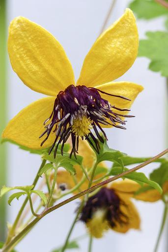 Keywords: clematis tangutica yellow flower golden tiara russian virgins bower climbing plant bloom blossom garden nature beautiful