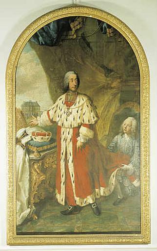 Keywords: Clemensaugust.jpg Artwork Creator George Desmarées de Links im Hintergrund Schloss Falkenlust <br /> Clemens August mit allen Zeichen seiner geistlichen und weltlichen Herrschaft Kurmantel und Kurhut stehen für das Kurfürstentum Köln das auf der Brust hängende bischöfliche Pektorale der Kragen des Priesterornats und die auf dem Tisch hinter dem Kurhut liegende Mitra versinnbildlichen sein Amt als Erzbischof von Köln c 1746 Oil on canvas Schloss Augustusburg Brühl first upload to de wp 09 35 14 Jun 2005 by Leonce49 other versions <gallery>1700 Clemens-August JPG Bundesarchiv B 145 Bild-F024827-0005 Schloß Brühl Staatsempfang für Kaiser von Iran jpg</gallery> PD-old-100 DEFAULTSORT 1746c; Clemens August of Bavaria George Desmarées Interior of Schloss Augustusburg Brühl Clemens August of Bavaria 1740s oil on canvas paintings Portrait 1740s portrait paintings Male 18th-century oil on canvas paintings in Germany 18th-century oil portraits of standing men at full length in ceremonial robes 18th-century portrait paintings in Germany Ermine clothing in art Ermine headgear in art Male shoes in portrait paintings Paintings by George Desmarées with fur Portrait paintings of men with crowns on cushions Portraits with page boy Tables in portrait paintings |