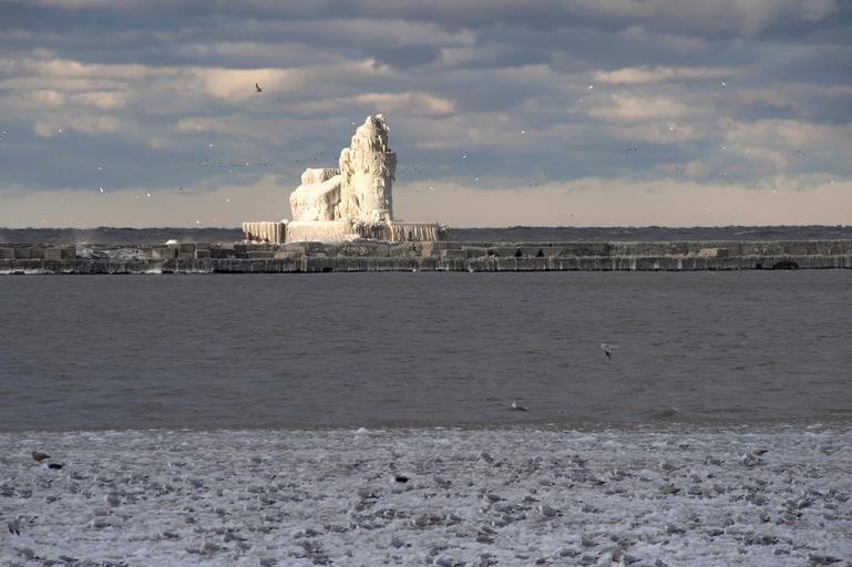 Keywords: cleveland bay ohio lake water frozen lighthouse ice sky clouds nature outside winter