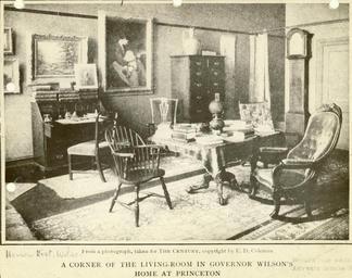 Keywords: new jersey cleveland lane clevelandlane unknown date unknowndate monochrome Local Accession Number: 240 Description: "A corner of the living room in Governor Wilson's home at Princeton. Over Governor Wilson's desk hangs an oil landscape by Mrs. Wilson." Photographer: E.D. Coleman Source: Research Library, 20th Century Fox Size: 8x10 Medium: Print, Black and White Date: Unknown Local Accession Number: 240 Description: "A corner of the living room in Governor Wilson's home at Princeton. Over Governor Wilson's desk hangs an oil landscape by Mrs. Wilson." Photographer: E.D. Coleman Source: Research Library, 20th Century Fox Size: 8x10 Medium: Print, Black and White Date: Unknown |