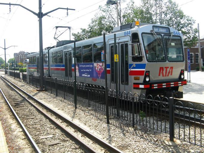 Keywords: Cleveland RTA light rail car train railway Shaker Square station