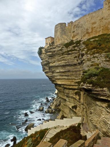 Keywords: cliff bonifacio corsica seascape coastal citadel building coast