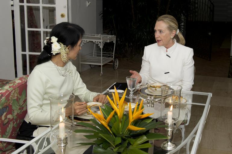 Keywords: Clinton and Suu Kyi having dinner.jpg en United States Secretary of State Hillary Clinton having dinner with Burma's pro-democracy leader Aung San Suu Kyi 2011-12-02 State gov http //www state gov/r/pa/ei/pix/2011/12/177900 htm link United States government employees PD-USGov Uploaded with UploadWizard Visit by Hillary Rodham Clinton to Myanmar in 2011 Aung San Suu Kyi |