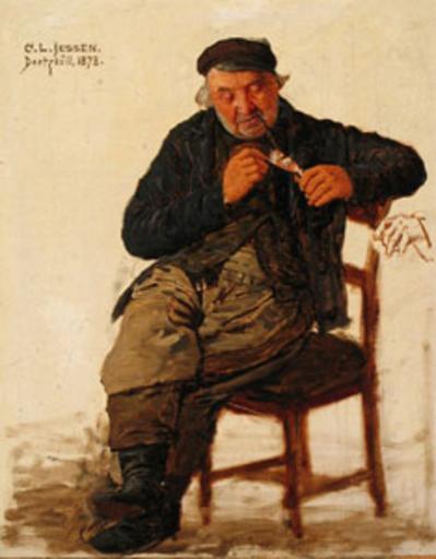 Keywords: CLJessen Studie HHansen.jpg Diese Gemäldestudie zeigt den Angaben eines Flensburger Heimatforscher zufolge der den Dargestellten persönlich gekannt hat den Gemüsehändler Hinrich Hansen aus C L Jessens Heimatort Deezbüll According to a local historian from Flensburg who knew the portrayed person this study shows greengrocer Hinrich Hansen from C L Jessen's home Deezbüll 1878 oil on canvas 43 5 × 43 5 cm Museumsberg Flensburg cite book Kunstkalender Schleswig-Holstein 1918/1919 Ernst Sauermann de Druckerei-Gesellschaft Hartung Co mbH Hamburg 1919 object history credit line accession number 9095 http //www museen-nord de/ml/digi_einzBild php pi 91_9095 suce Carl 20Ludwig 20Jessen mab_id kein sam kein page 2 action vonsuche r 20 Museen Nord PD-old-auto-1923 1917 DEFAULTSORT 1878; Carl Ludwig Jessen Carl Ludwig Jessen 19th-century portraits of men at full length 1878 paintings in Germany Niebüll Portraits with pipe Paintings in Kunstgewerbemuseum Flensburg |