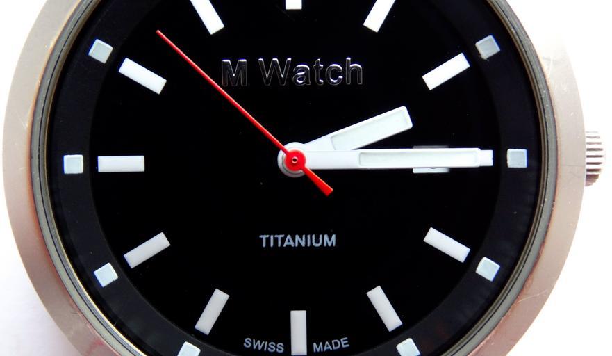 Keywords: clock time about red white black ad pointer seconds hours switzerland metal precision time measurement