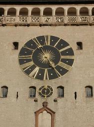 Keywords: clock wall altpoertel speyer time hour minute old round facade historic exterior closeup architecture detail dial decor