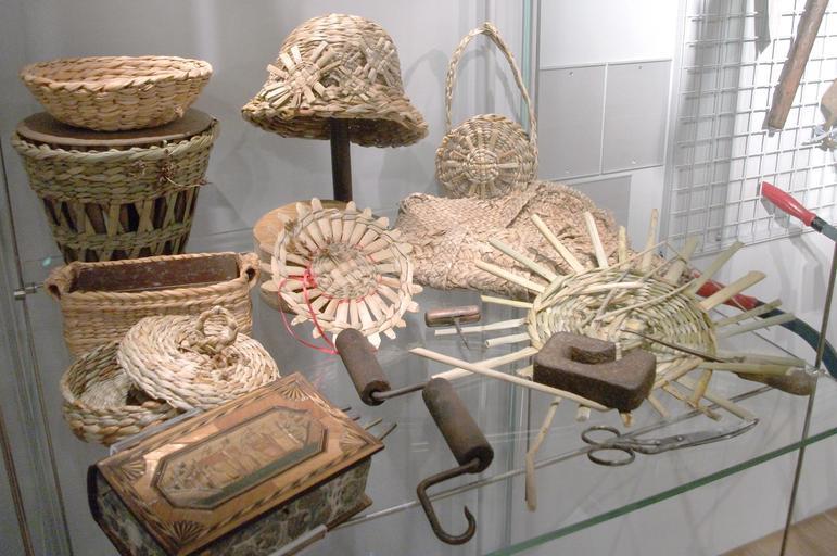 Keywords: ClockingInRushWork.JPG en A display of objects made of rushes of various ages from the nineteenth century to the present and some rush-working tools Some of the more recent work was done by Pamela Morgan her students The box also made of rush straw in the left foreground was made by C19 French prisoners of war in Peterborough own Speed 2010-02-18 Clocking In Exhibition Bedford Museum Straw art Juncus acutus Photos by Simon Speed |