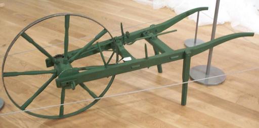 Keywords: ClockingInSingleWheelImplement.JPG en A single wheeled seed drill in Bedford Museum's Clocking In exhibition at Bedford Gallery It was used in the agricultural training program at Carlton Approved School on the site of what is now Emmaus Village It may have been used for grass seed the box for which would have sat on top but has now been lost own Simon Speed 2010-02-18 Clocking In Exhibition Bedford Museum Carlton Bedfordshire Seed drills Photos by Simon Speed |