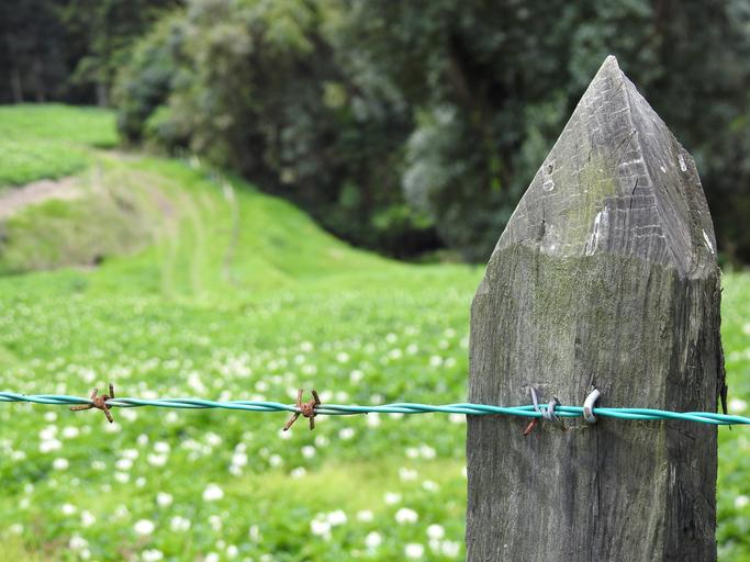 Keywords: close field wire fence post barbed wire barbed wire fence