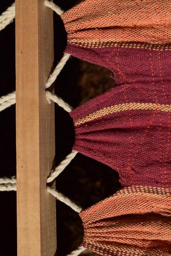 Keywords: close hammock fabric rope wood summer cozy mediterranean color red sunshine rest friendly relax