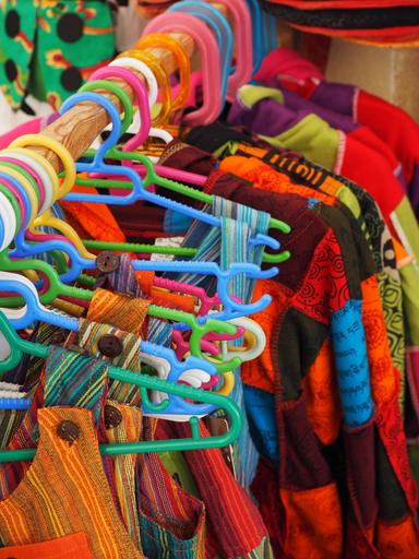 Keywords: clothing colorful selection coat hanger purchasing shopping fashion modebewusst souvenir