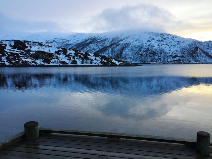 Keywords: cloud blue clear reflection amazing beautiful sky sea fjord snow mountain winter travel lauklines kystferie kvaloya kvaløysletta norway tromso scandinavia europe
