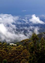 Keywords: clouds blue sky white hills trees house view fluffy distance