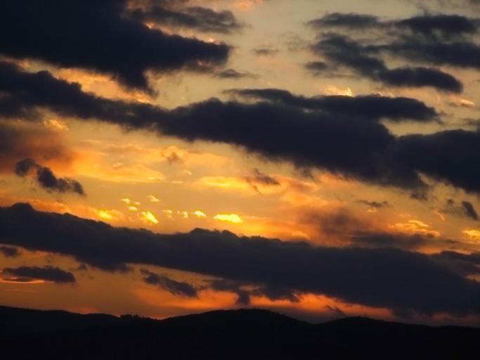 Keywords: clouds clouded sky evening sky dusk sunbeam evening sunset colorful orange sky red color mountain range