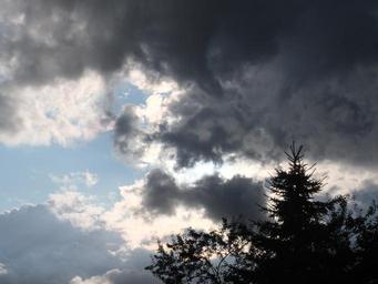Keywords: clouds dark hell sky gloomy evening mood tree fir