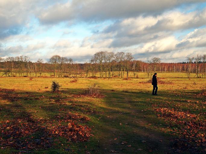 Keywords: clouds horizon person hiking landscape netherlands nature cold morning