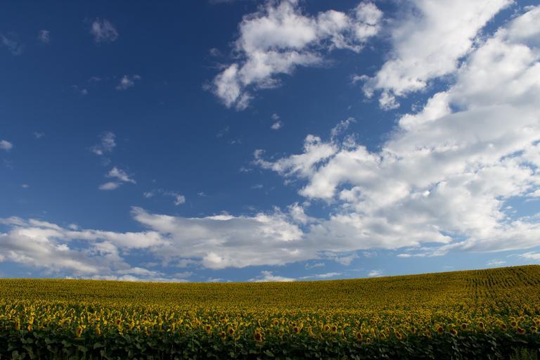 Keywords: clouds sky field sunflower agriculture sunflower field plant flower nature