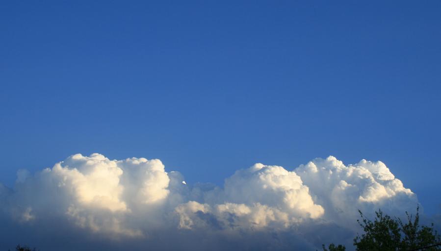 Keywords: clouds white cumulus large dense packed tops shining sunlight sky blue