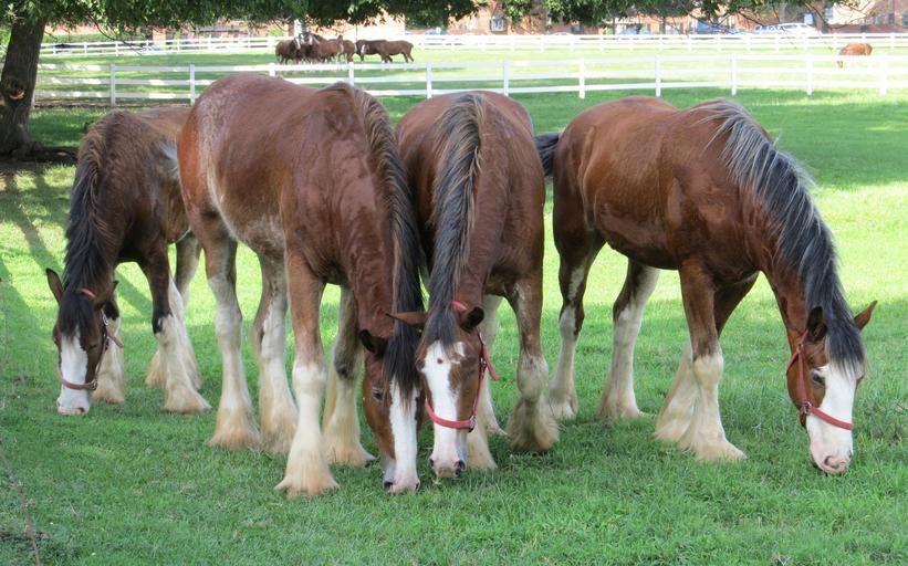 Keywords: clydesdales horses yearlings young grazing pasture corral fence paddock farm portrait agriculture purebred