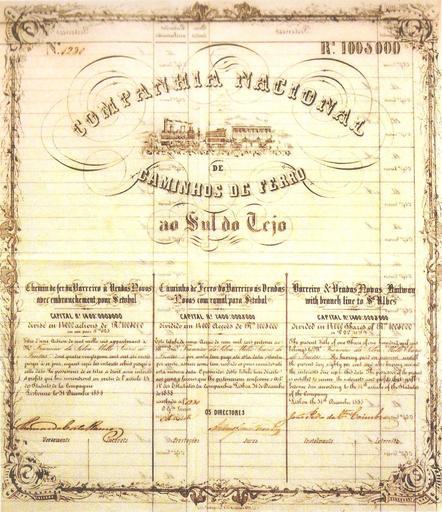 Keywords: CNCFST Stock certificate.jpg pt Título de acção da CNCFST - Companhia Nacional de Caminhos de Ferro ao Sul do Tejo que construiu o caminho de ferro do Barreiro a Vendas Novas com um ramal para Setúbal em Portugal en Stock certificate of the CNCFST - Companhia Nacional de Caminhos de Ferro ao Sul do Tejo Southern Tagus Railways National Company who built the railway between Barreiro and Vendas Novas with a branch to Setúbal in Portugal 1858-12-31 REIS Francisco Cardoso dos; GOMES Rosa Maria; GOMES Gilberto et al Os Caminhos de Ferro Portugueses 1856-2006 S l CP-Comboios de Portugal e Público-Comunicação Social S A 2006 238 p ISBN 989-619-078-X Companhia Nacional de Caminhos de Ferro ao Sul do Tejo other versions Custom license marker 2014 12 31 Anonymous-EU Uploaded with UploadWizard Companhia Nacional de Caminhos de Ferro ao Sul do Tejo 1858 in rail transport in Portugal Stock certificates from Portugal Os Caminhos de Ferro Portugueses 1856-2006 |
