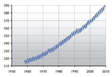 Keywords: CO2-Mauna-Loa.png graph A graph depicting CO<sub>2</sub> levels from 1958 to 2009 as measured at Mauna Loa Hawaii Year is on the x-axis atmospheric carbon dioxide concentration in parts per million is on the y-axis The cause for the yearly rise and fall is the annual cycle of plant respiration The cause of the increasing trend is the anthropogenic release of CO<sub>2</sub> mainly due to the use of fossil energy sources Graph drawn by Hanno using data published on the web by P Tans 2007 as Monthly mean atmospheric carbon dioxide at Mauna Loa Observatory Hawaii Global Monitoring Division Earth System Research Laboratory National Oceanic and Atmospheric Administration U S Department of Commerce U S A http //www cmdl noaa gov/ccgg/trends/co2_data_mlo php Hanno Hanno Global warming graphs Mauna Loa |