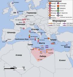 | Keywords: Coalition action against Libya mk.svg mk Ка та на коалициските сили во Либија Coalition_action_against_Libya svg 2011-03-22 17 39 UTC Jolly Janner Coalition action against Libya de png Coalition action against Libya translatable Converted objects to text for translating Coalition_action_against_Libya svg Cc-zero Original upload log This image is a derivative work of the following images File Coalition_action_against_Libya svg licensed with Cc-zero 2011-03-21T21 09 26Z Jolly Janner 616x627 3905182 Bytes <nowiki>+Spangdahlem USAF</nowiki> 2011-03-21T21 03 12Z Philly boy92 616x627 3892105 Bytes <nowiki>Airspace transparency increase</nowiki> 2011-03-21T21 01 18Z Philly boy92 616x627 3892093 Bytes <nowiki>Slight text fix + Malta</nowiki> 2011-03-21T19 25 49Z Jolly Janner 616x627 3837909 Bytes <nowiki>+Adjabiya fixed Spain text scale</nowiki> 2011-03-21T19 05 46Z Jolly Janner 616x627 3818487 Bytes <nowiki>Labelled Spain</nowiki> 2011-03-21T19 01 36Z Jolly Janner 616x627 3817910 Bytes <nowiki>Added Rota and Moron</nowiki> 2011-03-21T18 46 27Z Philly boy92 616x627 3805798 Bytes <nowiki>correction</nowiki> 2011-03-21T18 44 46Z Philly boy92 616x627 3796238 Bytes <nowiki>Libyan airspace</nowiki> 2011-03-21T17 47 25Z Jolly Janner 616x627 3250595 Bytes <nowiki>Third time lucky </nowiki> 2011-03-21T17 41 52Z Jolly Janner 616x627 3246205 Bytes <nowiki>Try again; doesn't seem to work when Inkscape is open with the file </nowiki> 2011-03-21T17 37 16Z Jolly Janner 616x627 3246205 Bytes <nowiki>Made joint air bases a bit bigger and correctly alphabetised the key</nowiki> 2011-03-21T17 32 32Z Philly boy92 616x627 3252039 Bytes <nowiki>Greece tag</nowiki> 2011-03-21T17 23 09Z Jolly Janner 616x627 3245510 Bytes <nowiki>Try again</nowiki> 2011-03-21T17 20 39Z Jolly Janner 616x627 3245510 Bytes <nowiki>More air bases</nowiki> 2011-03-21T16 55 40Z Jolly Janner 616x627 3198668 Bytes <nowiki>Converted text to objects</nowiki> 2011-03-21T16 35 57Z Jolly Janner 616x627 2982308 Bytes <nowiki>More fixes</nowiki> 2011-03-21T16 19 24Z Jolly Janner 616x627 2984038 Bytes <nowiki>Version 2</nowiki> 2011-03-21T00 57 25Z Jolly Janner 93x88 307038 Bytes <nowiki>+USAF base Aviano</nowiki> 2011-03-21T00 33 20Z Jolly Janner 93x88 303660 Bytes <nowiki>Improvements</nowiki> 2011-03-21T00 20 06Z Jolly Janner 93x88 298218 Bytes <nowiki> coalition intervention in Libya Loosely based upon sources from http //www bbc co uk/news/world-africa-12800377 BBC N</nowiki> Uploaded with derivativeFX 2011 military intervention in Libya Maps of the 2011 Libyan civil war SVG maps in Macedonian Airspace |