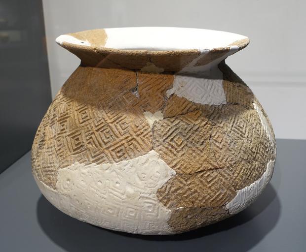 | Keywords: Coarse pottery pot with spiral pattern, Bronze periiod, from So Kwun Wat, Tuen Mun, Hong Kong - Hong Kong Museum of History - DSC00747.JPG en Exhibit in the Hong Kong Museum of History Hong Kong This artwork is old enough so that it is in the public domain Photography was permitted in the museum without restriction 2014-07-27 01 27 54 own Daderot other versions PD-100 cc-zero Chinese ceramics in the Hong Kong Museum of History Uploaded with UploadWizard Ceramics of the Bronze Age in China |