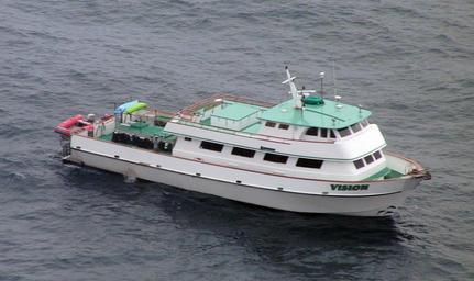 Keywords: Coast Guard responds to sinking vessel Vision DVIDS1088175.jpg en LOS ANGELES -- Coast Guard Sector Los Angeles received a report that the 90-foot commercial dive vessel Vision was taking on water seven miles north of San Nicolas Island Calif The vessel's crew reported that they lost their rudder and were sinking The crew was able to apply a temporary patch to slow the flooding and the Coast Guard requested all 33 people 26 passengers and seven crew members to put on lifejackets The patch on the vessel is holding well and there is no need to pump at this time Coast Guard assets that responded included an HH-65 Dolphin helicopter from Air Station Los Angeles an MH-60 Jayhawk helicopter from Sector San Diego the Coast Guard Cutter Blackfin and a C-130 aircraft from Air Station Sacramento The Naval vessel Robert E Peary also arrived on scene to assist Coast Guard Cutter Blackfin will be evacuating the passengers off the dive vessel for safe transport 2008-08-03 https //www dvidshub net/image/1088175 1088175 2013-12-11 23 31 LOS ANGELES CA US PD-USGov Eurocopter HH-65/MH-65 Dolphin Images from DoD uploaded by Fæ |