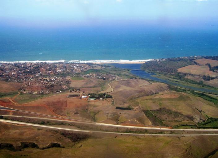 Keywords: coast line sea sky earth blue aerial river mouth white waves landmarks