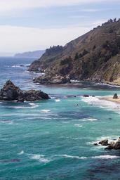 Keywords: coast shore ocean sea water nature cliffs rocks beach coastline view lookout wild pristine turquoise misty