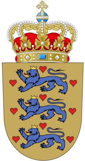 Keywords: Coat of Arms of Denmark.svg Det danske rigsvåben <br>Blasonering Tre gående blå løver over hverandre med røde tunger og guldbevæbning og kronet med gyldne kroner alt i et gyldent skjold strøet med ni røde søblade Betegnelsen søblade blev officielt fastsat i 1972 men disse figurer omtales hyppigst som hjerter <br> Coat of arms of Denmark <br>Blazon Or three lions passant in pale Azure crowned and armed Or langued Gules nine hearts Gules Own Koyos 2009-03-23 Insignia 100px Legal notice Official Danish insignia are protected by strict law against unauthorized use according to the Danish Criminal Code § 132 Additional legal restrictions also apply Royal Arms of Denmark SVG coats of arms of Denmark |