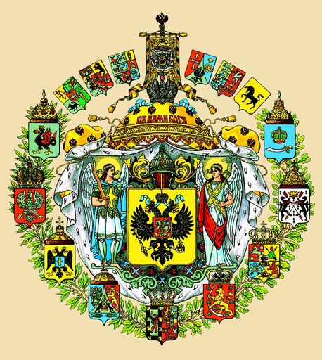 Keywords: coat of arms of the russian empire heraldry russia empire crown shield mantle double-headed eagle motto banners angels sword helmet symbolism power crosses