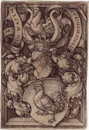 | Keywords: Coat of Arms with a Cock2.jpg Beham Hans Sebald 1500-1550 Coat of Arms with a Cock 1543 P 267 B 256 Private collection Scan by Nick Michael 2006 Reproduction of 2D artwork in public domain Creator Sebald Beham Coats of arms of Germany to be classified Engravings of animals cocks in heraldry Sebald Beham Cocks in crest |