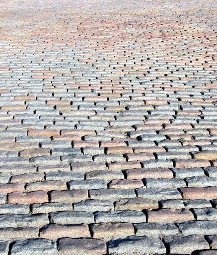 Keywords: cobblestones pavement walkway pathway path texture running bond brickwork